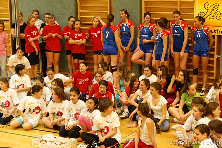Dort wo durch Elisabeth Speiser für Womensport Goes School 2004 der Startschuß fiel, kehrte das Projekt anlässlich eines Volleyball Faschingsevents auch wieder zurück. 70 Kinder, 18 Mannschaften aus sechs Schulen, betreut durch WoGoS, in Zusammenarbeit mit volley16wien, nahmen an diesem Turnier in der Kooperativen Mittelschule Koppstrasse teil. Gespielt wurde in zwei Altersklassen. Die jüngsten, 10-12 Jahre, zwei gegen zwei, und die etwas größeren sechs gegen sechs. Insgesamt wurden an diesem Nachmittag 40 Spiele, laut dem von Turnierleiterin Mag. Petra Meingast komplex erstellten Spielplan, von den mehr als begeisterten und motivierten Mädchen absolviert. "Die Mädchen sind zum Spielen gekommen und nicht um herumzustehen. Der Nachmittag soll ihnen eine Beziehung zum Sport allgemein und im speziellen zu Volleyball vermitteln, das kann allerdings nur passieren wenn sie auch häufiger gefordert werden, und Volleyball spielen", so Mag. Meingast. Ebenfalls am Nachmittagsprogramm stand danach ein Showtraining der WVL Mannschaft von volley16wien, bei dem die Mädchen zum mitmachen animiert wurden, und der sprichwörtliche Funke auf die "ZuseherInnen" übersprang. Last but not least durften dann auch die legendären, Ströck Faschinskrapfen bei diesem Faschingsturnier nicht fehlen. Die Siegerehrung bildete wie immer den abschließenden Höhepunkt. Bedanken möchte sich volley16wien und WoGoS vor allem bei den HelferInnen und LehrerInnen, im besonderen bei Direktor Anton Fessl, ohne den diese Veranstaltung als Hausherr nicht möglich gewesen wäre. Der Dank geht natürlich auch an alle Partnerschulen, Billrothstraße, Albertus Magnus Schule, Parhamer Platz, Haizingergasse, Rahlgasse, und der Koppstrasse die ihren SpielerInnen ermöglichten an diesem Faschingsturnier teilzunehmen.