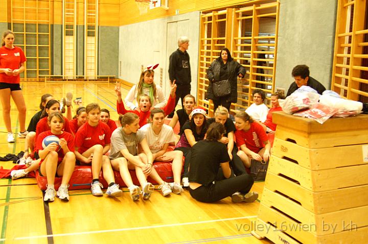 Als voller Erfolg erwies sich das am Freitag den 18. Dezember von volley16wien veranstaltete Weihnachtsturnier in der Koppstrasse. 30 Spiele, 4 Bewerbe, und 14 Mannschaften hatten viel Spaß an diesem Nachmittag. Die Koordination des Turniers wurde von volley16wien Präsidentin Mag. Petra Meingast durchgeführt. Die Organisation des "Off Court - Events", wurde von der Familie Majoros übernommen. volley16wien bietet den Eltern und Kindern jedes Jahr die Möglichkeit, Volleyball gemeinsam "erspielen" zu können. Gemeinsam Zeit zu verbringen, ist wohl das Größte und zugleich auch Beste Geschenk welches man seinen Kindern in der Weihnachtszeit schenken kann. 130 Personen in der Halle der Koppstrasse sprechen für volley16wien und obige Aussage. "Es freut uns lachende Gesichter und glückliche Kinder in der Halle und begeistert beim Volleyballsport zu sehen. Wir wollen uns bei allen die geholfen haben und Spaß hatten bedanken, hoffen sie gesund im nächsten Jahr wieder bei volley16wien zu sehen, und wünschen schöne Weihnachten und einen guten Rutsch ins Jahr 2010.